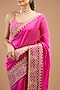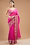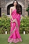 Featuring a pink saree in organza silk base with marodi and gota embroidery. It is paired with a matching embroidered blouse.