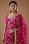 Featuring a rani pink saree in organza silk base with gota and marodi work. It is paired with a matching blouse.