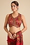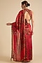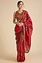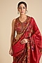 Featuring a red saree in organza silk base with print and hand work. It is paired with a chanderi silk blouse. Accentuate it with traditional kundan jewellery, a statement potli bag and embroidered juttis for a stylish ensemble, ideal for wedding festivities, sangeet celebrations or festive occasions.