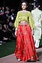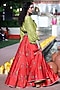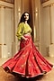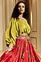 Punit Balana features a Surkh Laal Skirt Set that captivates with its elegance. The eye-catching flared skirt is crafted in chanderi silk with pockets, gota and mirror embroidery. It is paired with a heena green embroidered crop top. Style this designer set with oversized polki earrings and embroidered juttis for a blend of youthful charm and timeless elegance. Perfect for mehendi soirees, destination weddings and high-energy festive nights.