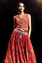 Punit Balana features a Surkh Laal Lehenga Set that captivates with its elegance. The eye-catching lehenga is crafted in chanderi silk with print. It is paired with a waistcoat having resham coin embroidery. Style this designer lehenga set with a statement polki necklace set, potli bag and embroidered juttis for a regal flair and a touch of tradition. Perfect for evening soirees, sangeet celebrations or cocktail parties.