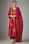 Featuring a surkh laal kurta in chanderi silk base with print, coin work and resham embroidery. It is paired with pants and an organza silk dupatta. Accentuate it with dangler earrings and heels for a festive occasion, wedding, engagement or sangeet ceremony.