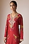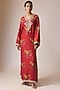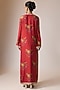 Featuring a surkh laal kaftan in satin silk base with marodi work and print. It is paired with pants. Accentuate with polki earrings and heels for a festive occasion or pooja ceremony.