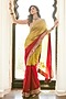 Featuring a surkh lal-colored saree in organza silk base with marodi and mirror work. It is paired with a satin silk blouse. Accentuate it with statement jewellery and heels for a sangeet ceremony.