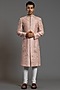 Dusty Peach Blended Raw Silk Resham Embroidered Sherwani Set