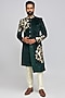 Green Suede Velvet Hand Embroidered Indowestern Set
