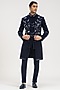 Navy Blue Suiting Hand Embroidered Indowestern Set