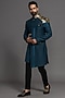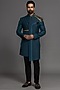 Teal Blue Suiting Hand Embroidered Indowestern Set