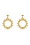 Gold Finish Ginkgo Motif Floral Round Stud Earrings