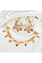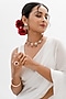 Featuring a 18kt gold plated handcrafted meenakari floral choker necklace studded with kundan polki and ruby stones, set in brass. It is paired with a matching pair of earrings. Perfect for weddings, receptions, festive celebrations, or formal soires.