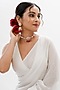 Featuring a 18kt gold plated handcrafted necklace studded with pearl and kundan polki, set in brass. It is paired with a matching pair of earrings. Perfect for weddings, receptions, festive celebrations, or formal soires.