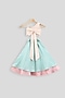 Beige Embroidered Blouse With Blue Skirt For Girls