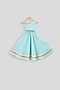 Featuring a light blue blouse in taffeta base with gold sequins hand embroidery. It is paired with a matching skirt.