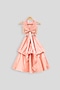 Peach Embroidered Blouse With Balloon Skirt For Girls