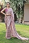 Featuring a pastel pink saree in georgette base with crochet lace border and sequins work. It is paired with a matching satin blouse.