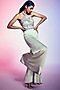 Featuring a light olive green jumpsuit in liva satin organza base with mesh, satin ribbon, mirror, sequins, small rose beads, and glass beads embroidery.