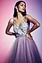 Featuring a lilac ball gown in net base with waist side-cut including pastel colored mesh, sequins, and glass beads embroidery.
