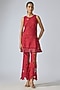Featuring a red kurta in cotton schiffli base with floral cutwork. It is paired with semi-elasticated flared pants. Accentuate with statement jewellery and heels for a festive look.