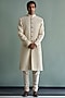 Cream Silk Sherwani Set With Dhaga Work
