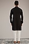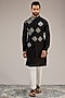 Featuring a black nehru jacket in cotton matka base with kashmiri motif embroidery and patchwork. It is paired with a kurta and viscose suiting knit trousers. Perfect attire for any festive occasion or a sangeet ceremony, exuding traditional charm and timeless elegance.