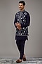 Featuring a blue nehru jacket in pashmina silk base with kashmiri embroidery. It is paired with a cotton matka kurta and trousers. Perfect wear for festive occasions or pre-wedding ceremonies.