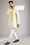 Featuring an ivory kurta in silk base. It is paired with pants and a dupatta. Style it with mojaris for a festive occasion, wedding, sangeet or engagement ceremony.
