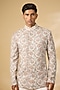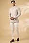 Featuring an ivory bandhgala in viscose wool base with kashmiri embroidery. It is paired with pants. Style it with mojaris for a wedding, sangeet or engagement ceremony, exuding charm and elegance.