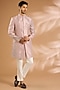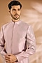 Featuring a lavender indowestern in linen silk chanderi base with beads and resin embroidery. It is paired with trousers. Accentuate it with pair of loafers and a sleek watch for a refined look, ideal for festive gatherings, wedding or sangeet ceremony.