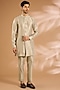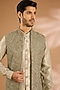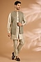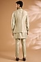 Light Sage Linen Silk Chanderi Sequin Embroidered Nehru Jacket Set