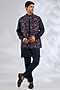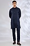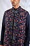 Featuring a navy blue bundi jacket silk base. It is paired with a kurta and pants. Accentuate it with pair of kolhapuris and a sleek watch for a refined look, ideal for festive gatherings, wedding or sangeet ceremony.