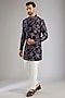 Featuring a navy blue indowestern silk base. It is paired with pants. Style it with a pair of mojaris for a wedding, engagement or sangeet ceremony.
