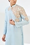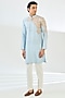 Featuring a powder blue kurta in cotton matka base with kashmiri embroidery. It is paired with off-white trousers. Perfect wear for a wedding or engagement ceremony, exuding charm and elegance.