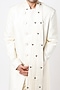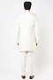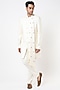 Featuring a white draped indo-western bandhgala jacket in viscose wool base with embroidery. It is paired with matching pants.