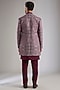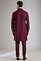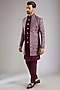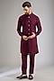 Featuring a wine indowestern jacket silk base. It is paired with a kurta and pants. Style it with a pair of mojaris and a watch for a wedding, engagement or sangeet ceremony.
