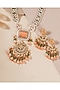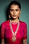 Featuring a gold finish handcrafted necklace studded with multi-colored stones, set in brass. It is paired with a matching pair of earrings.