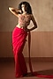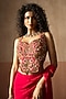 Featuring a fuschia pre-stitched draped saree in georgette base. It is paired with a hand embroidered blouse. Accentuate it with statement earrings, heels and a clutch for festive occasion, sangeet or cocktail ceremonies.