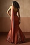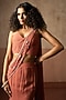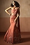 Featuring a peach fishtail skirt saree in georgette base with hand embroidery. It is paired with a hand embroidered blouse. Accentuate it with zircon jewellery and heels for festive occasions, sangeet or wedding ceremonies.