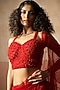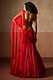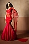 Featuring a red and fuchsia pink fishtail skirt saree in net and georgette base. It is paired with a hand embroidered blouse. Accentuate it with pearl or swarovski jewellery and heels for festive occasions, sangeet, mehendi or wedding ceremonies.