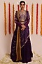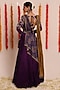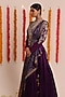 Featuring a purple lehenga in raw silk base with pearl, zardosi and thread embroidery. It is paired with a silk hand embrodered blouse, a banarasi brocade dupatta, a bandhani Draped dupatta and a belt. Perfect wear for wedding or reception ceremony.