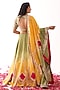 Featuring a yellow and green lehnega in silk base with gota patti work. It is paired with a blouse and a dupatta. Perfect wear for haldi or mehendi ceremony.
