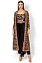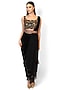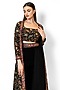 Featuring a black jacket in georgette and lycra base with resham and thread work. It is paired with pants, a belt, an organza drape and a blouse having resham work. Style it with dangler earrings and heels for festive occasions.