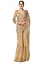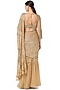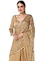 Featuring a gold lehenga saree in shimmer foil georgette base with cutdana embroidered drape. It is paired with a net blouse. Accentuate it with statement jewellery and heels for a wedding, sangeet or engagement ceremonies.
