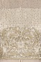 This set features a ivory drape top in georgette base with an asymmetric hemline. It is appliqued with golden and silver sequins and thread embroidery all over the bodice and sleeves and slit at the centre front. It comes along with a matching chiffon ivory pleated pallazo pants.