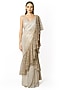 Featuring an ivory lehenga saree in georgette base with sequins, natural stones, cutdana and bead embroidery. It is paired with a blouse and a petticoat. Accentuate it with earrings and heels for festive occasions or pre-wedding ceremonies.