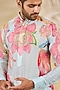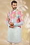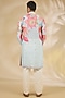 Featuring an aqua kurta in georgette base with print, sequins and zari embroidery. It is paired with cotton silk pants. Style it with a pair of kolhapuri sandals for a festive occasion, wedding or engagement ceremony.