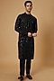 Featuring a black kurta in georgette base with hand embroidery. It is paired with matching pants.