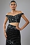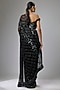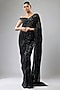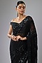 Featuring a black saree in georgette base with beads and sequins hand embroidery. It is paired with a net blouse and an underskirt. Accentuate it with delicate silver jewellery and heels, perfect for weddings, receptions and festive occasions.