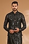 Featuring a black bundi jacket in georgette base with sequin work. Style it with a kurta set and embroidered loafers for a festive occasion, wedding, sangeet or engagement ceremony, exuding charm and elegance.