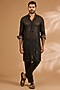 Featuring a black bundi jacket in georgette base with sequins work. It is paired with a kurta and cotton silk pants. Style it with embroidered loafers for a festive occasion, wedding, sangeet or engagement ceremony, exuding charm and elegance.