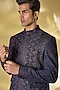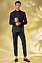 Featuring a blue bandhgala jacket in georgette base. It is paired with cotton silk pants. Pair it with polished loafers and a statement brooch for a refined look, perfect for wedding receptions, cocktail evenings or formal celebrations.